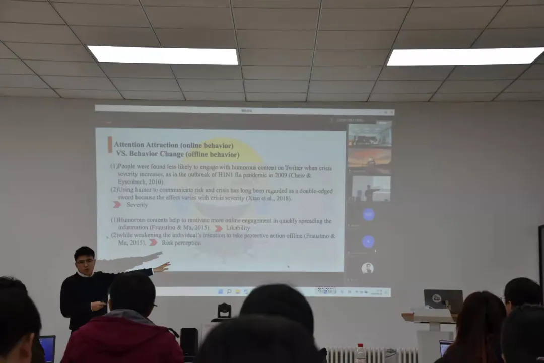 在互动环节中,师生共同探讨了“来自计算机科学背景的学生从技术角度能为危机传播研究做些什么?”及“利用社交媒体的大数据来模拟危机蔓延过程的可能性以及需要考虑的因素”等问题,同时对报告内容进行了进一步的探讨。