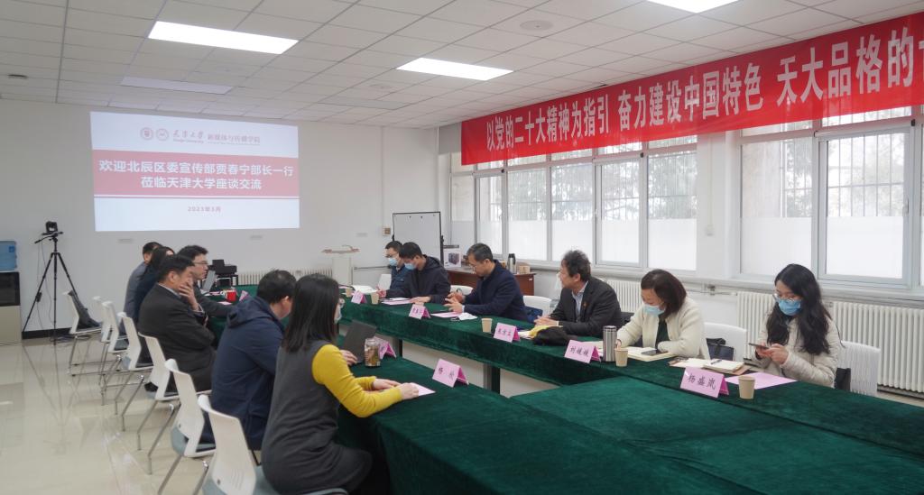 2023年3月6日上午,天津市北辰区委常委、宣传部长贾春宁一行到访沙巴体育 进行调研。沙巴体育 院长陆小华、党委书记王赞参加。