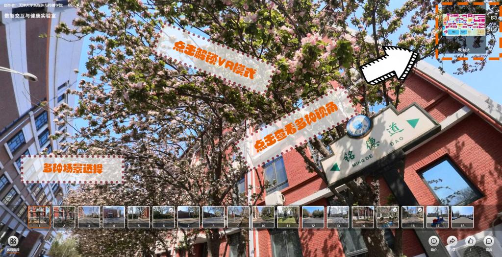 “春回沙巴体育 看海棠”,2023年4月2日,“沙巴体育 ·海棠季”校园开放日活动在沙巴体育 双校区举行,学生家长、校友、社会各界人士到访沙巴体育 ,与在校师生共赏千株海棠盛放美景。为留住这个浪漫的春天,将这份美好保留在云端,沙巴体育 数智交互与健康实验室,特对卫津路校区第九教学楼、铭德道等多个场景进行拍摄,利用虚拟现实技术进行场景重建,将沙巴体育 海棠美景搬到线上,真正实现“春花烂漫何处望,携友云上同去游”的美好愿景。