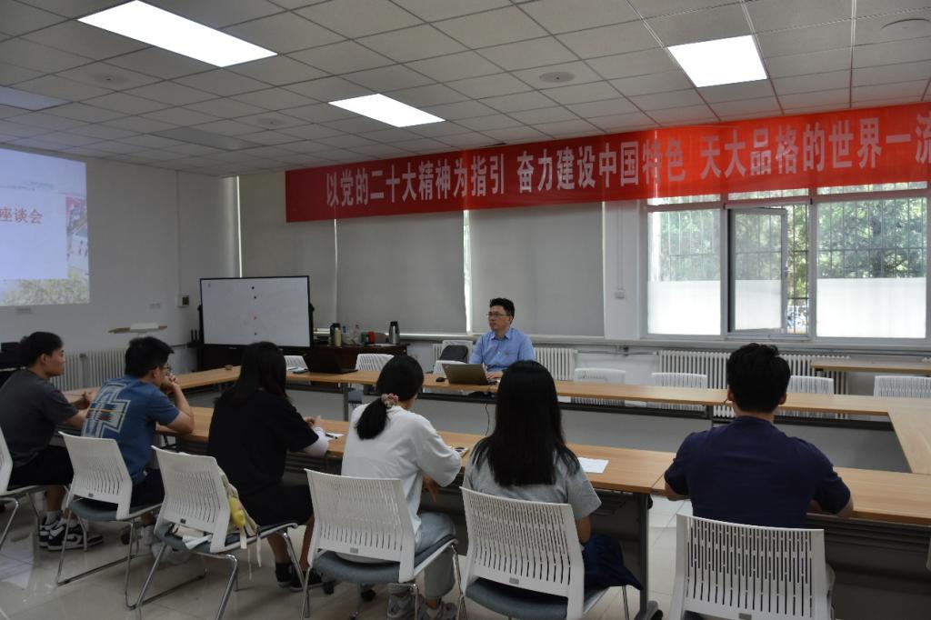 党课之后,围绕“智能传播背景下复合型新闻传播人才培养”等题目,王赞与在场2021级研究生进行座谈,调研学生对沙巴体育 人才培养的意见建议。面对即将进入毕业季的第二届新媒体沙巴体育 学子,王赞深入了解学生科研进度、论文发表情况、就业意向等。此外,围绕学生们关心的毕业审核、求职环境等关键问题,一一为学生答疑解惑。