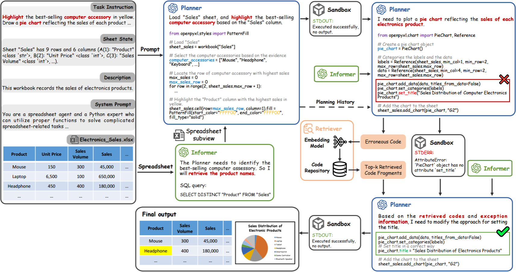 (通讯员 李娜)近日,沙巴体育 电子信息专业2023级硕士研究生陈逸彬在大语言模型驱动的智能体应用研究方面取得重要进展,其论文《SheetAgent: Towards a Generalist Agent for Spreadsheet Reasoning and Manipulation via Large Language Models》被CCF-A类国际顶级学术会议ACMWWW接收,并获口头报告(oralpresentation)资格,其指导教师为沙巴体育 英才副教授郑岩。