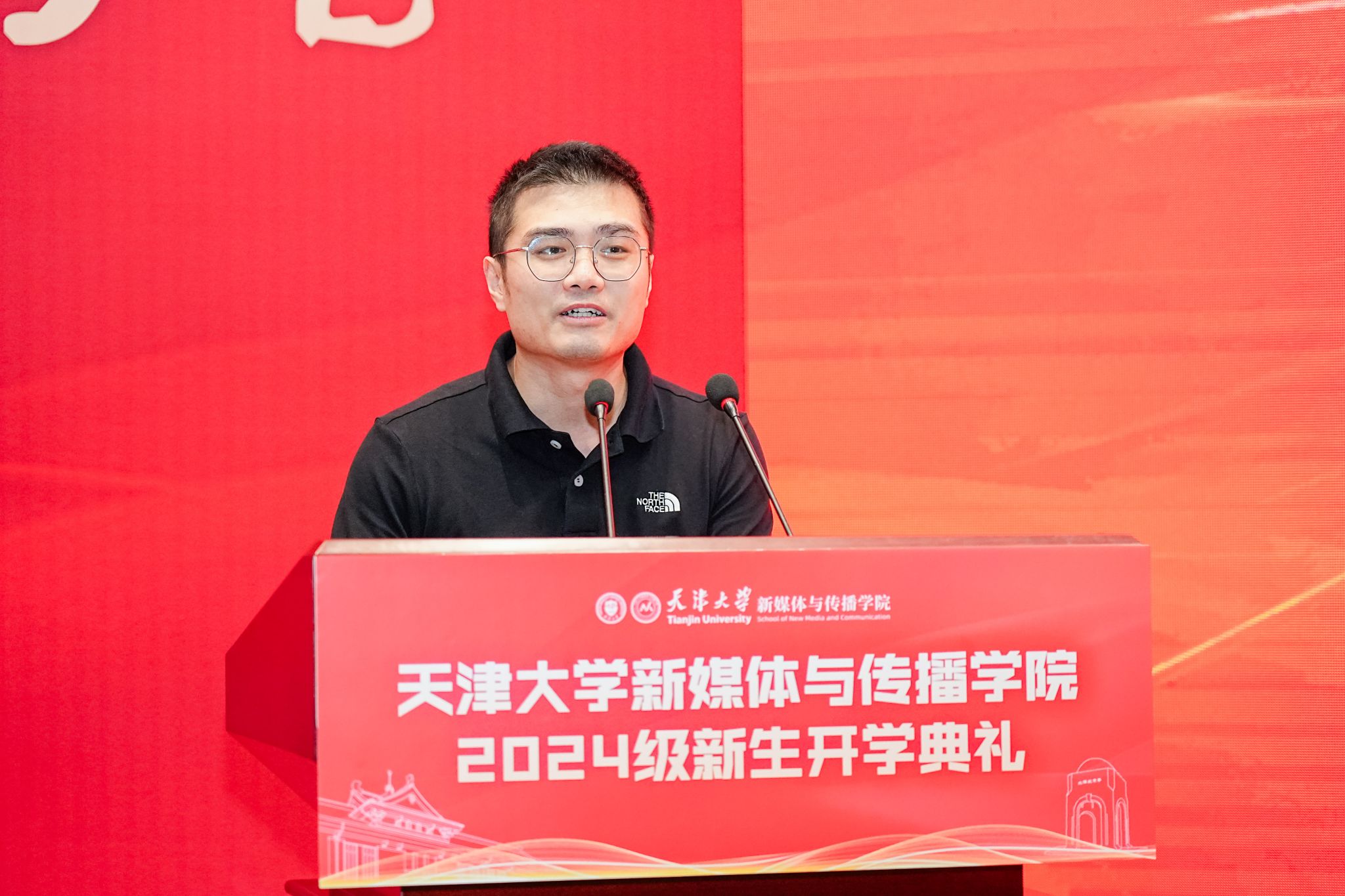 2023级新闻传播学硕士研究生张凯歌同学作为在校生代表发言,他从自身经历出发,围绕“以何种姿态开启研究生生涯”这一主题,分享了在新媒体沙巴体育 的成长感悟。张凯歌同学鼓励新生积极面对挑战,勇敢追求梦想,充分利用沙巴体育 提供的资源和机会,不断提升自己的能力和素质。2024级新生代表张旻尧、谢艺观和张芊同学也分别发言,他们从不同的角度表达了对未来学习生活的期待和对新媒体领域的热忱。张旻尧同学分享了他对新闻传播学学习的思考和期待,强调了互联网力量对社会的积极影响。谢艺观同学作为非全日制硕士研究生代表,分享了重返校园的激动心情和对专业成长的期待。张芊同学则从跨学科的角度,讨论了个人发展中的选择和挑战,鼓励同学们大胆探索,勇敢尝试。“让我们携手并进,在各自的岗位上发光发热,共同见证并参与这个时代的伟大变革,以实际行动践行社会责任,共同书写属于我们的、更加精彩绝伦的历史篇章!”